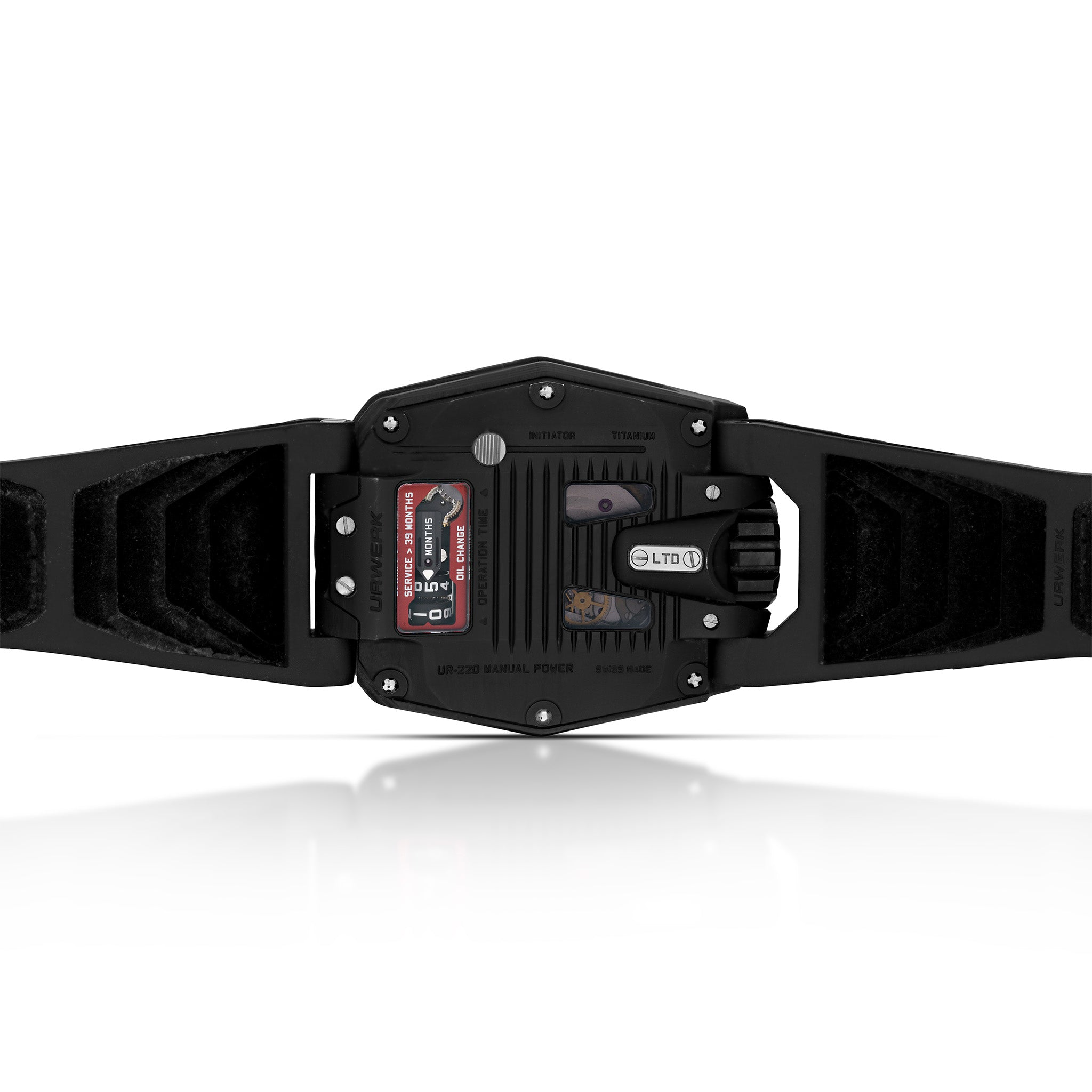 With its manually wound movement and control board on its back, the UR-220 goes back to URWERK’s earlier technologies in a case that is sleeker, more ergonomic and as stunning as ever. One exceptional feature is the return of the Oil Change indicator in a new guise. A limited production of 15 pieces every year!