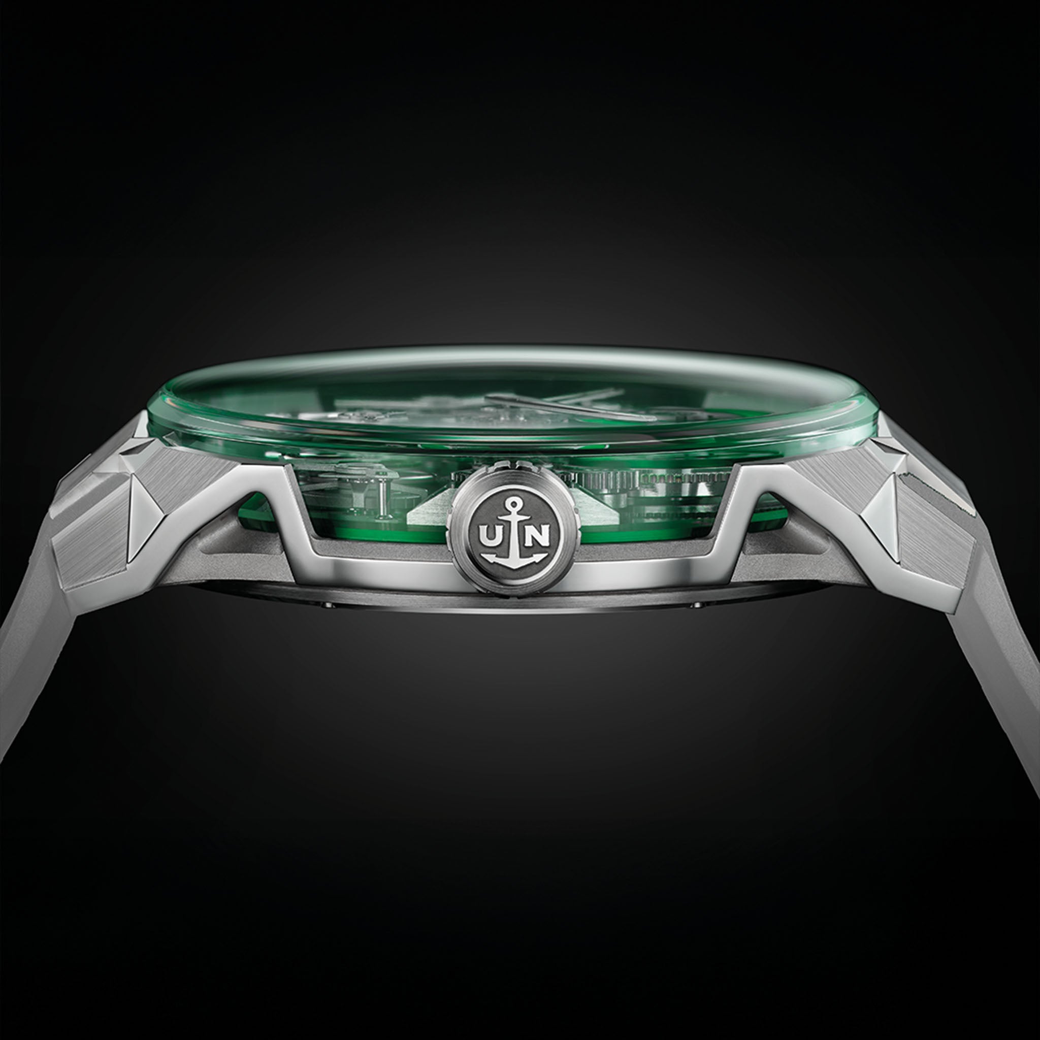 Métiers d’art meets high technology in a limited-edition USA-only timepiece. The Ulysse Nardin Blast Free Wheel Marquetry Silicon Green Watch features a new, hand-crafted marquetry dial on a high complication Ulysse Nardin wristwatch that celebrates both the superior mechanical performance and the striking aesthetics of silicon, in emerald green.